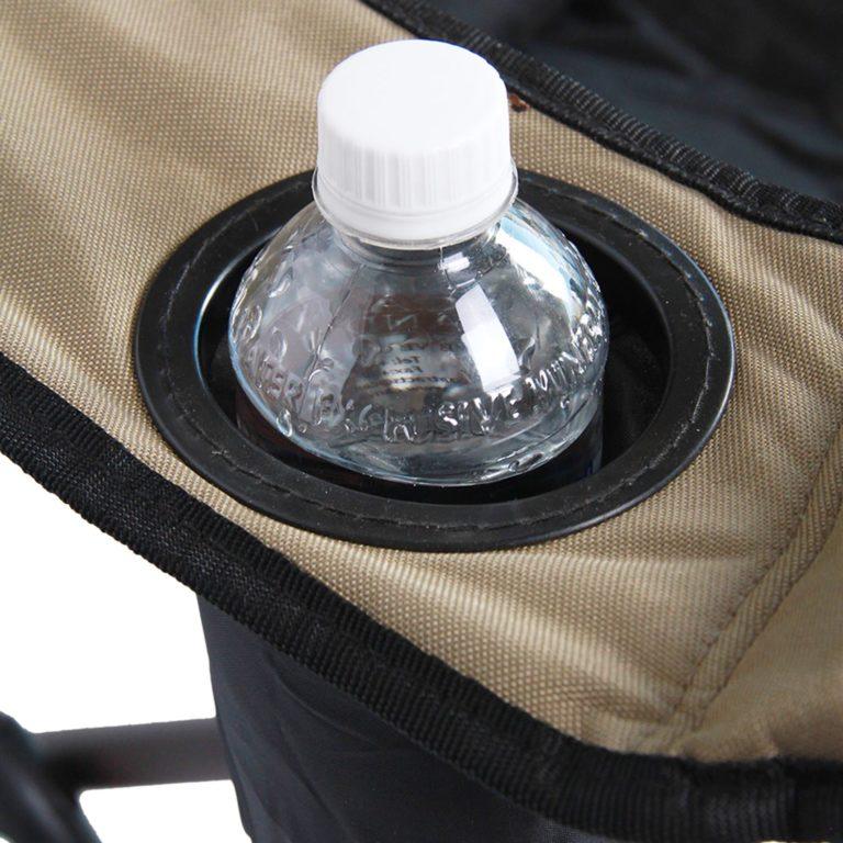 King size folding chair with static weight of 200 kg. Comes with side pocket and two cup holders and two front shock absorbers for easy access in and out of chair for bigger person